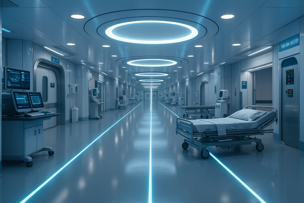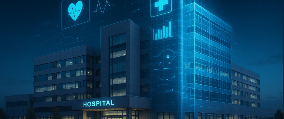 A digital twin of a modern hospital where nurses, doctors, administrators, insurers, and cyber professionals collaborate in real environments to deliver care, optimize operations, and secure critical systems.